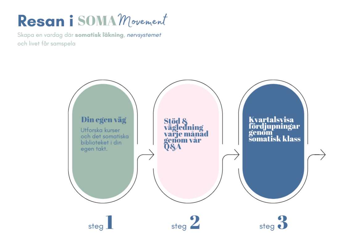 När du vilar in i SOMA Movement över tid får ditt nervsystem det som krävs för verklig förändring. Du får känna skillnaden mellan överlevnadsläge och reglering och du börjar bygga basverktyg för självreglering och motståndskraft som du kan använda i vardagen.